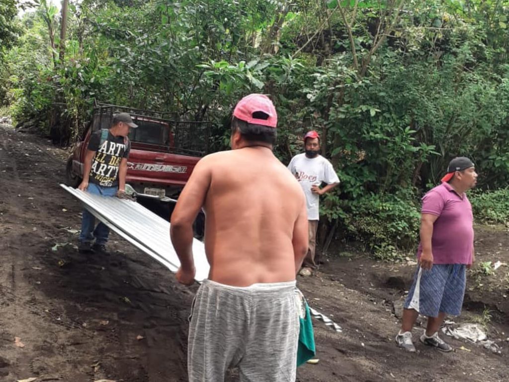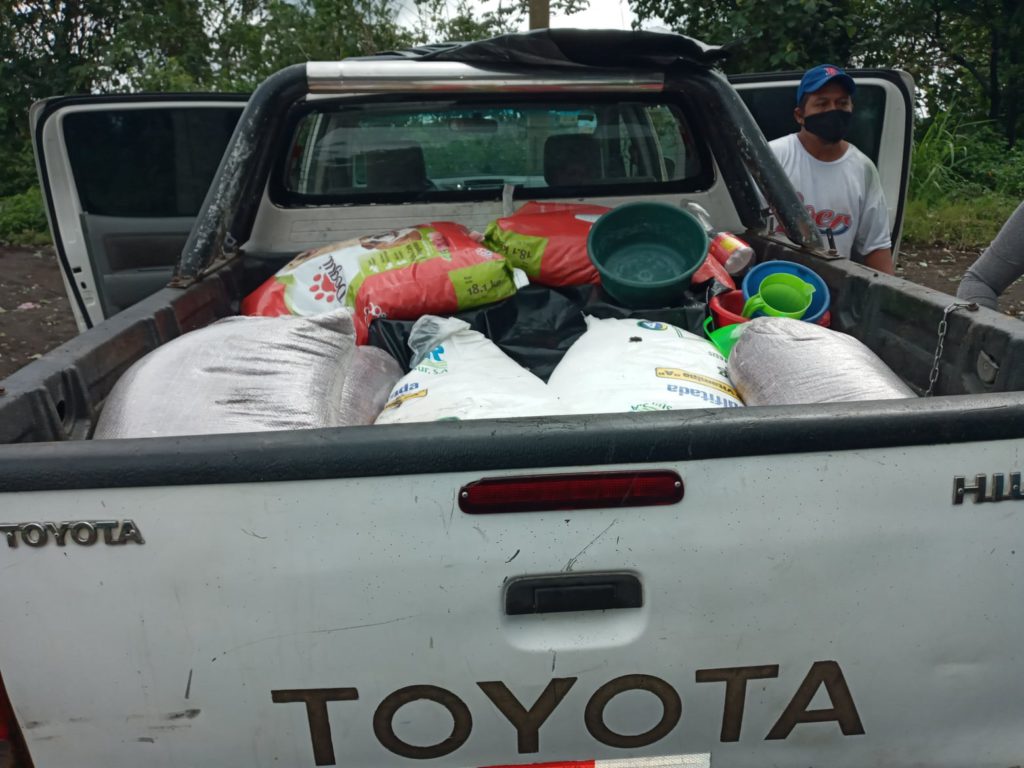 Several families took refuge in the local school but there is nothing there for them – no bedding or food. So we rapidly spent the first $2000 on food and got it out to people within an hour. As the road is impassable by vehicle the men from the pueblo carried sacks of rice and beans on their backs.”