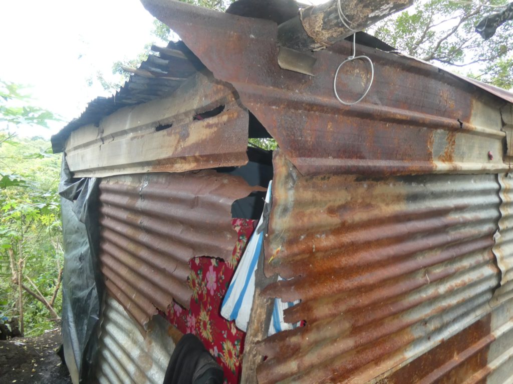 The river that you can see in the photographs did not exist before the hurricane. The family lived in a wooded area, at some distance from a creek barely a meter wide. You can see from the trees brought down by the force of the current – some of them celibas and guanacastes with trunks a meter thick – and the height of the trash deposited that during the height of the storm this “creek” was 100 meters wide and 2 meters deep.