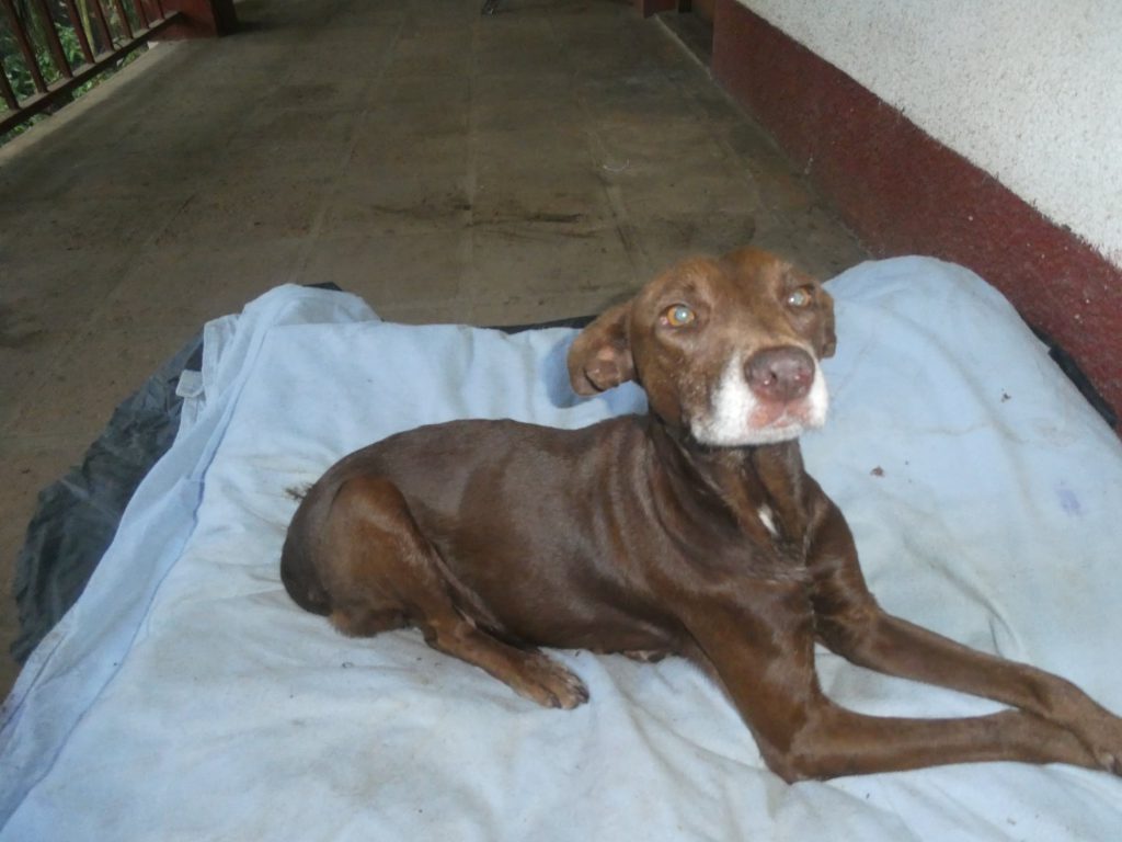 (4) Look after Chocolate – a rescued dog who had been hit by a vehicle in San Jan and cannot use either of her back legs.